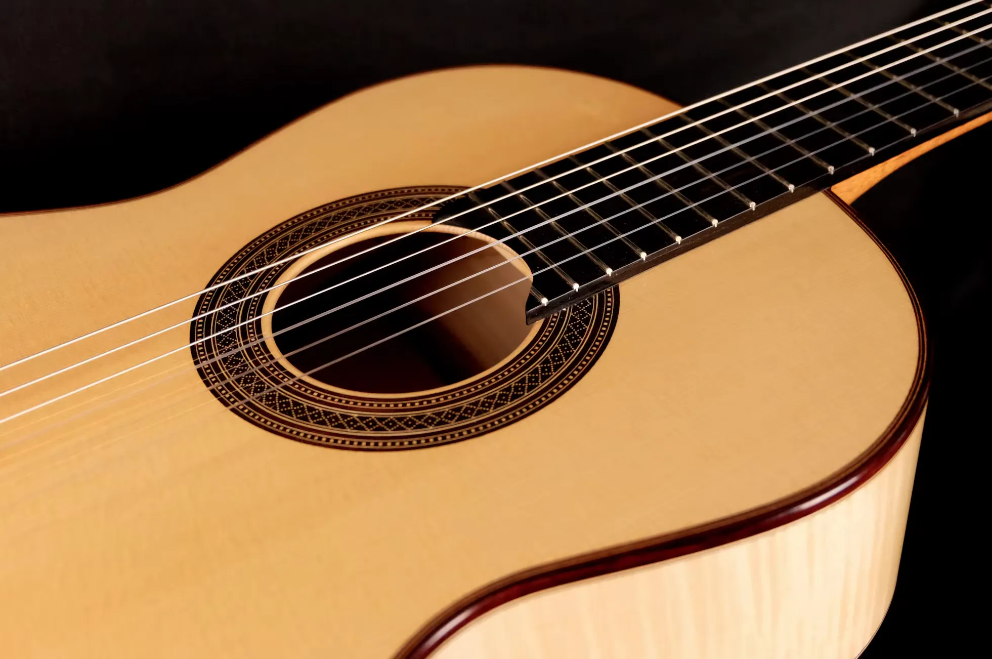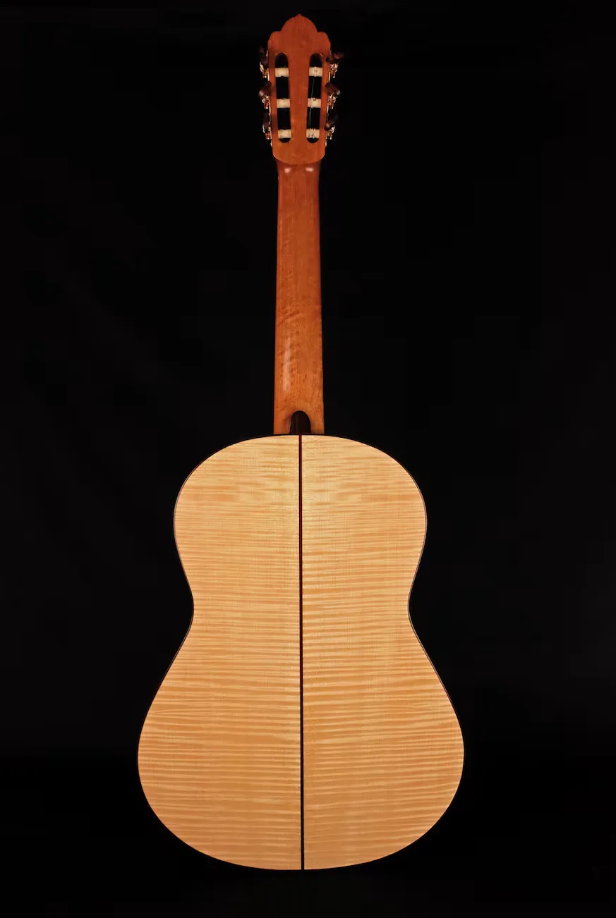 Detalle guitarra pino abeto y arce rizado por Ángel Gómez de Guillén