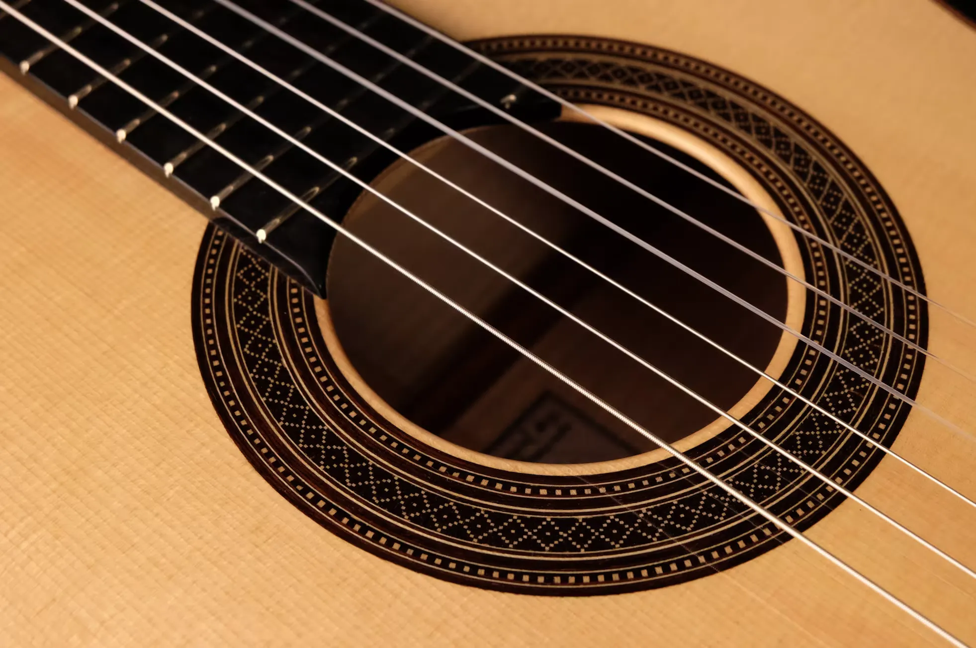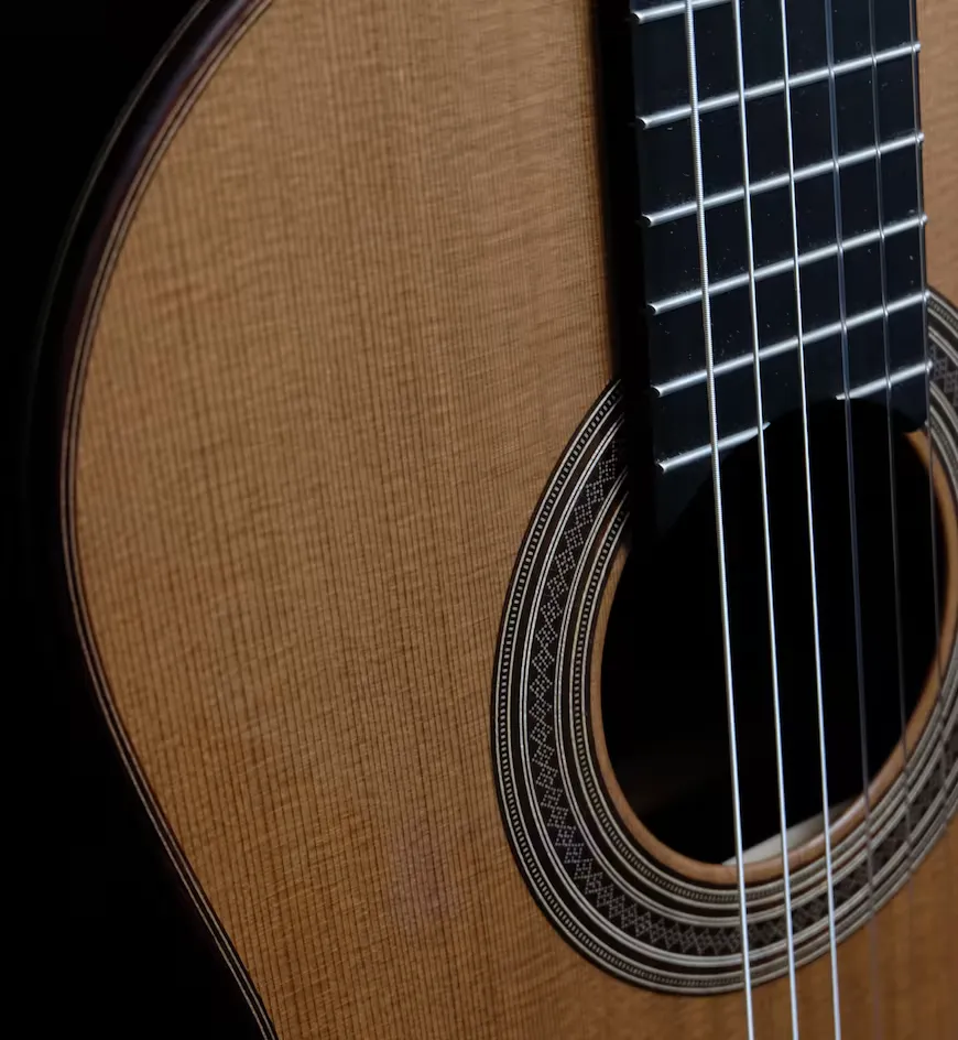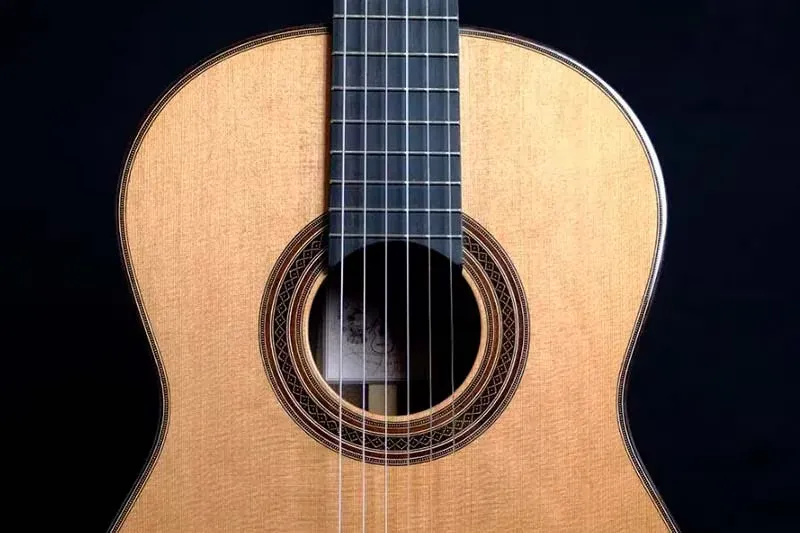 Detalle de guitarra clásica de cedro por Ángel Gómez de Guillén