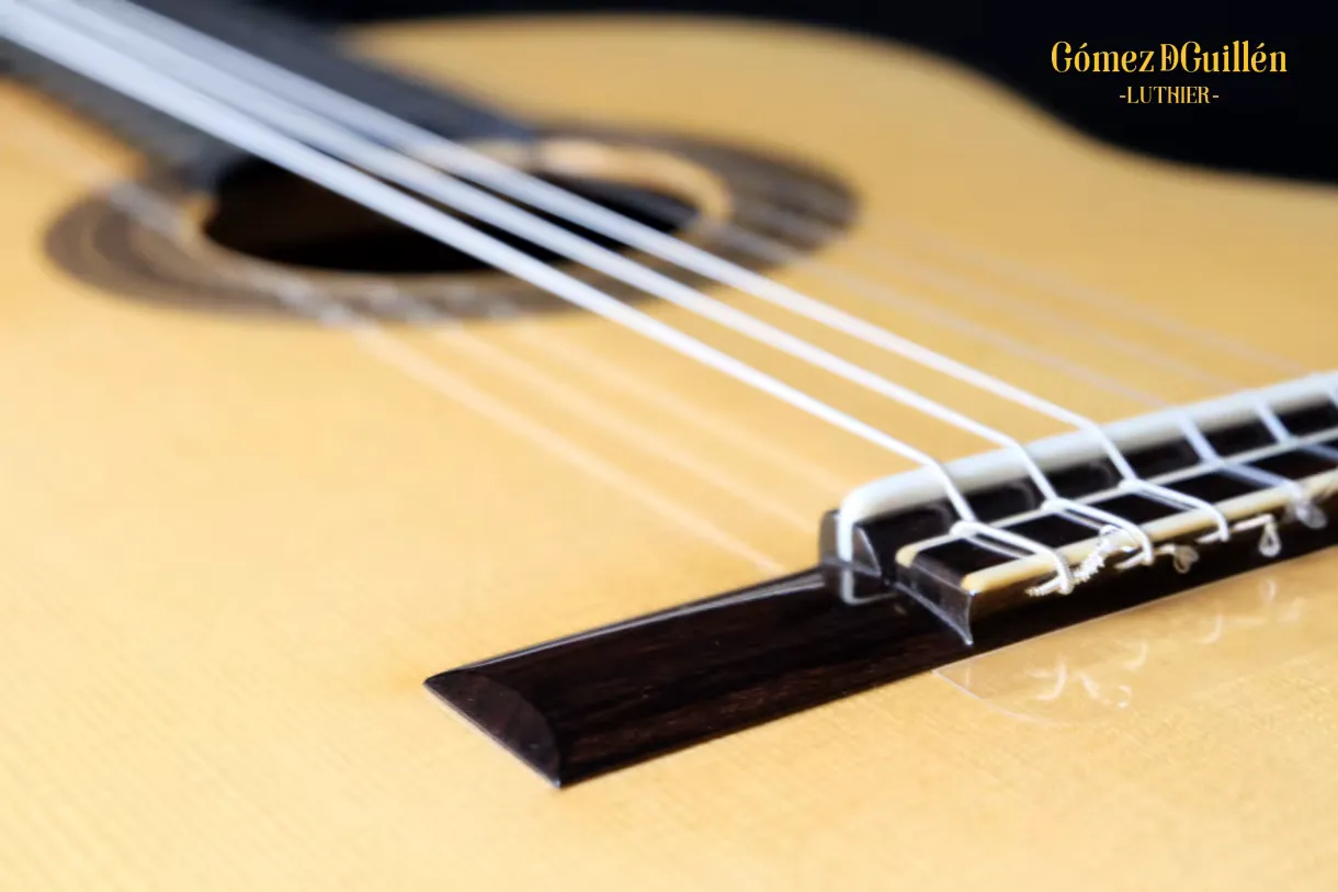 Detalle del puente por Ángel Gómez de Guillén, guitarras clásicas y flamencas hechas a mano