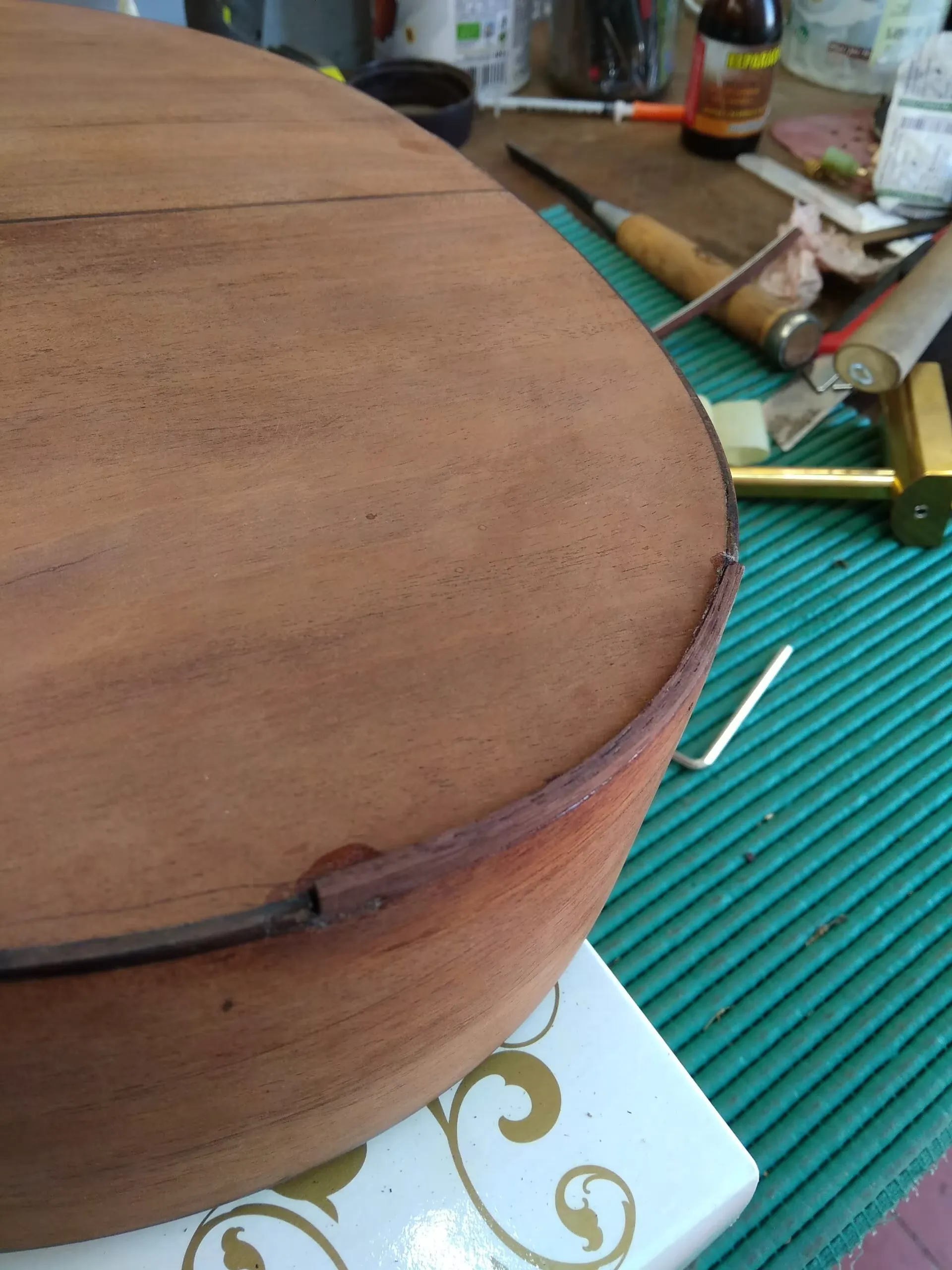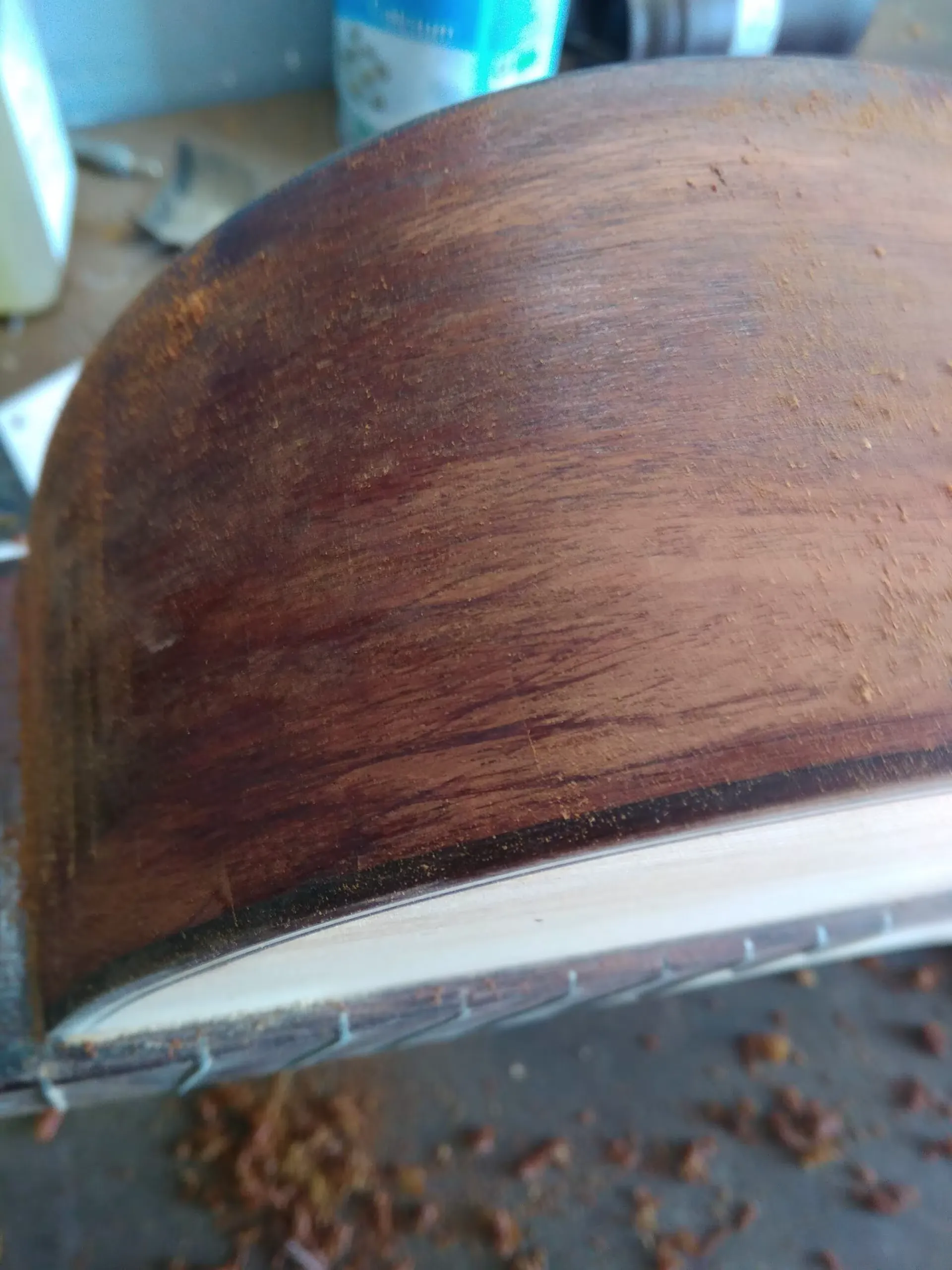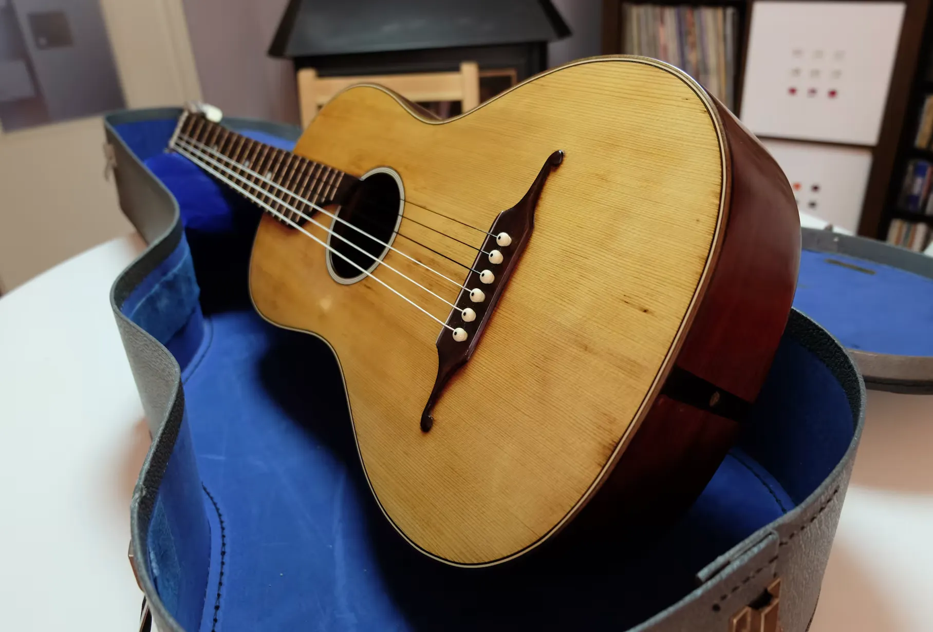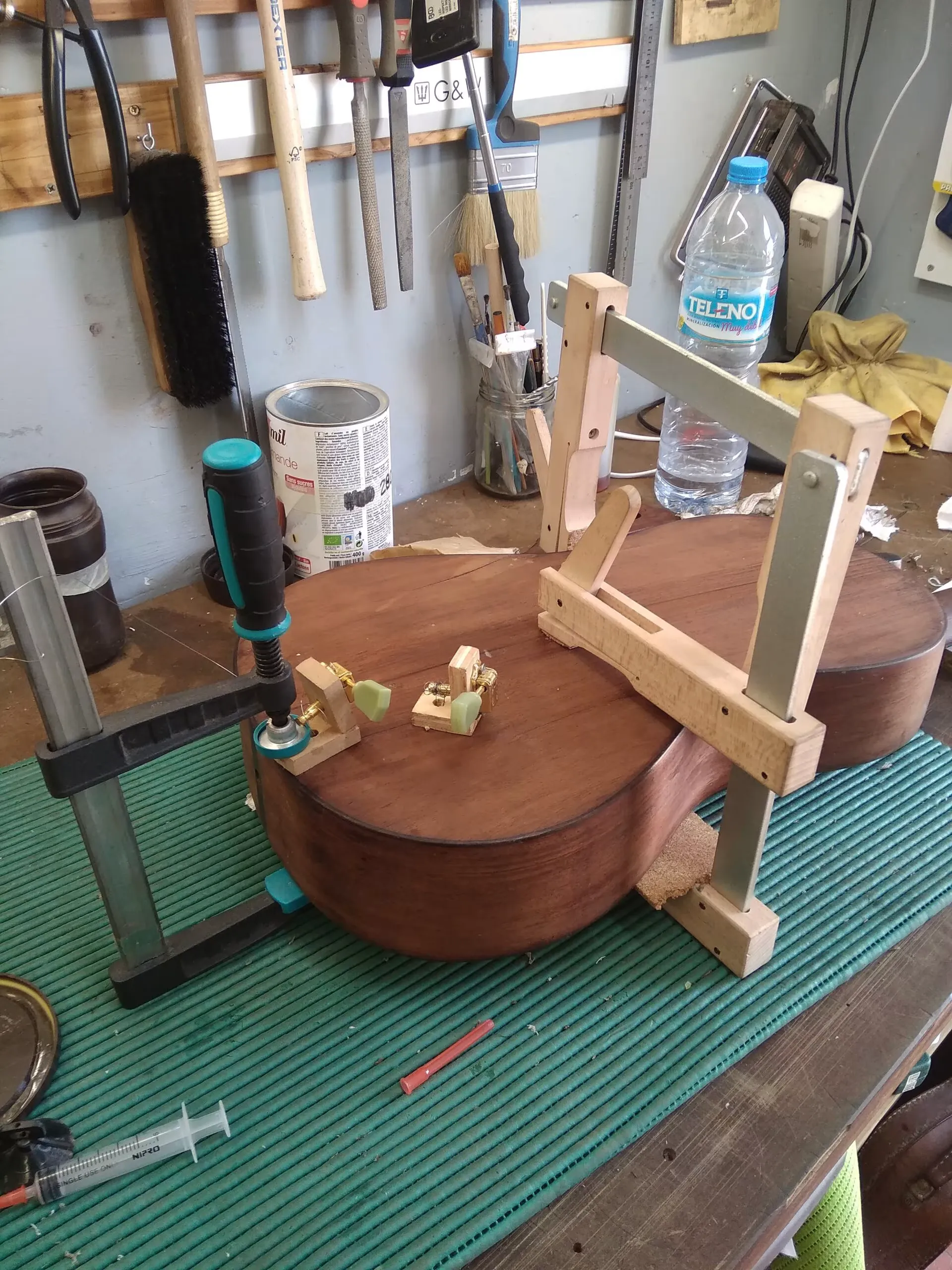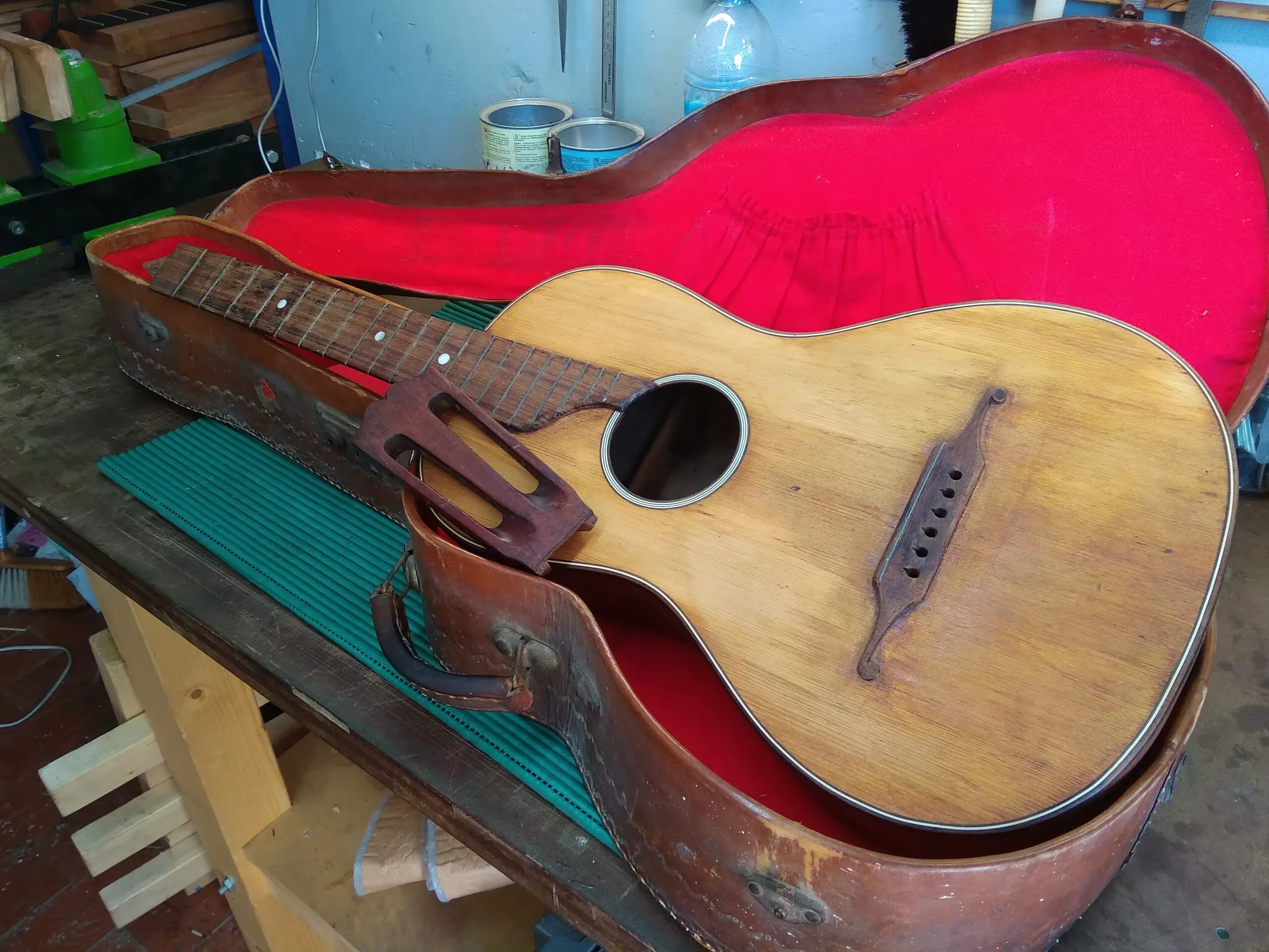 La guitarra estaba en muy mal estado y presentaba una gran diversidad de roturas producidas por el transcurso de los años: rotura de caja, aros, fondos, barniz, perfiles, despegado de varetas armónicas y despegado de pala.